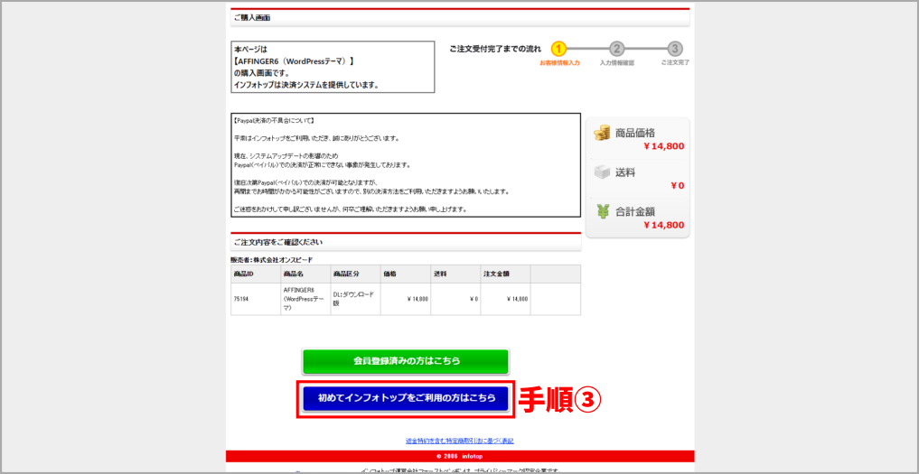 「③初めてインフォトップをご利用の方はこちら」をクリックしてください。