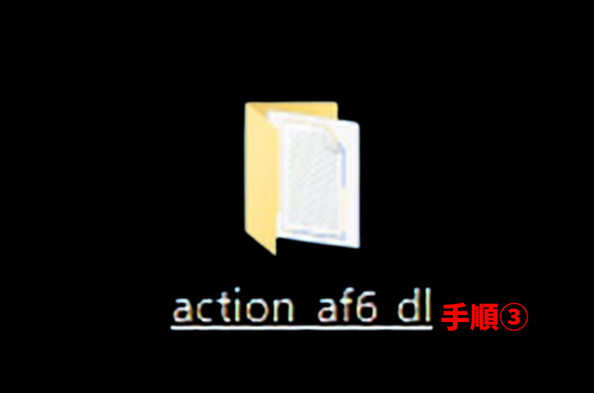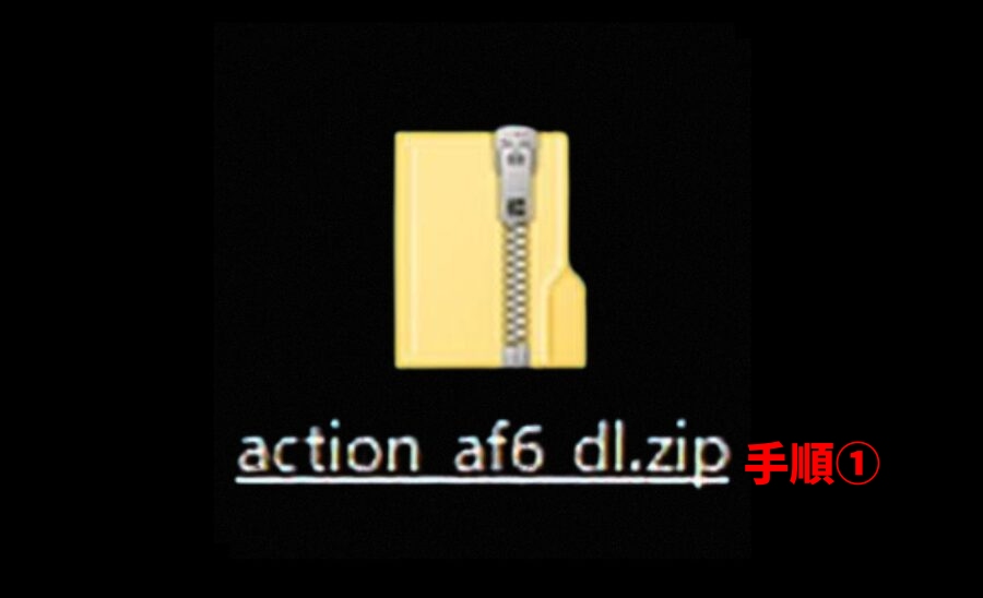 PCのダウンロードフォルダに「①action af6 dl.zip」があるので解凍します。