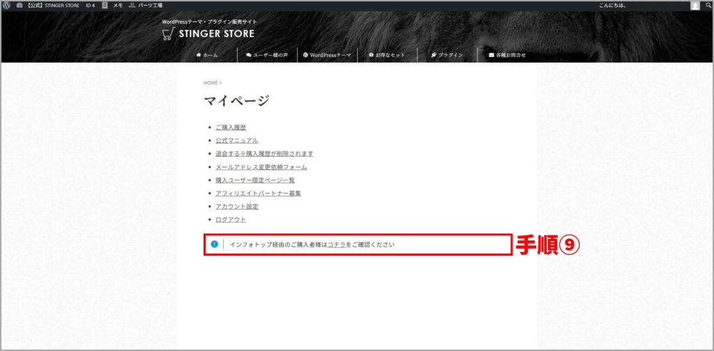「⑨インフォトップ経由のご購入者様はコチラをご確認ください」をクリックします。