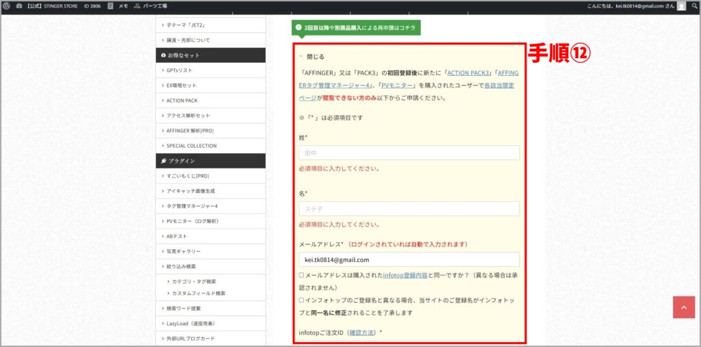 「⑪infotop購入ページ利用申請フォーム」をクリックします。