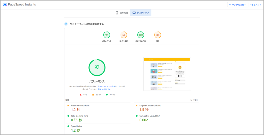 AFFINGER6のサイトスピードは「PageSpeed Insights」を使って計測しています。