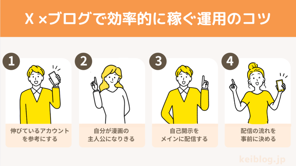 続いて、𝕏 ×ブログで効率的に稼ぐための運用のコツを、X 集客に焦点をあてて共有します。