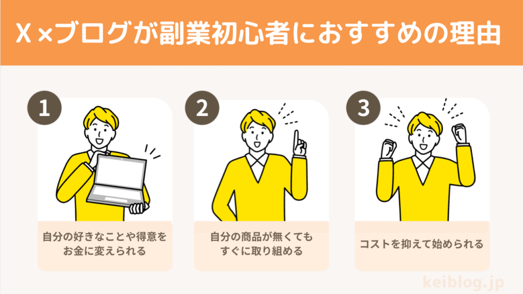 まずはじめに、𝕏 ×ブログが副業初心者におすすめな理由から解説していきますね。