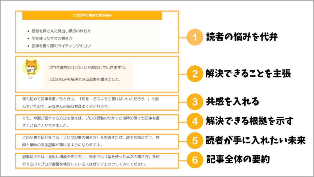そのニーズをもとに流れを考えると、読者に響きやすい内容の記事構成が作れます。