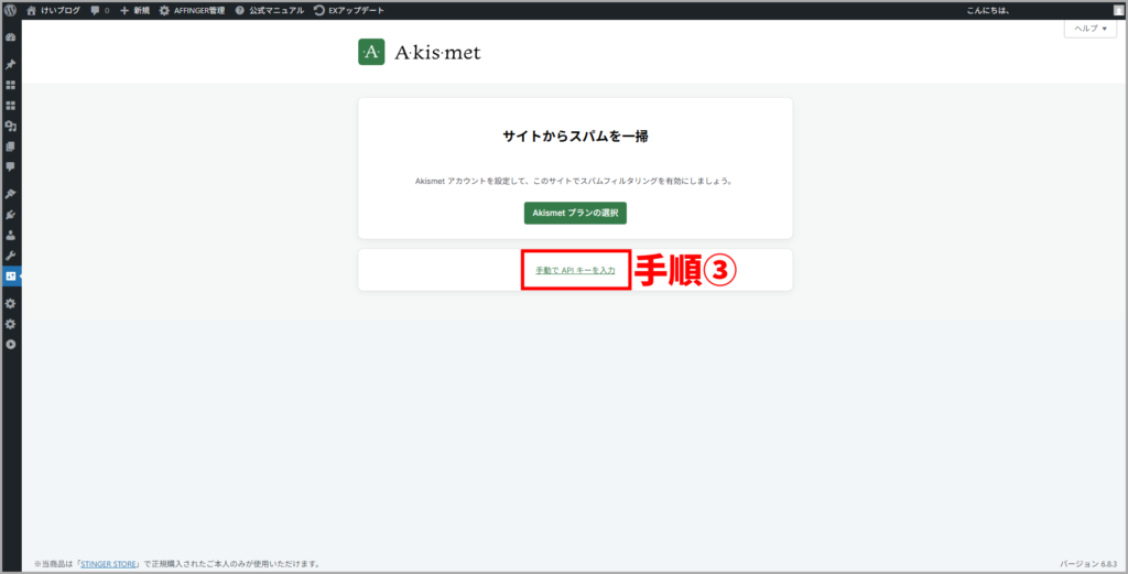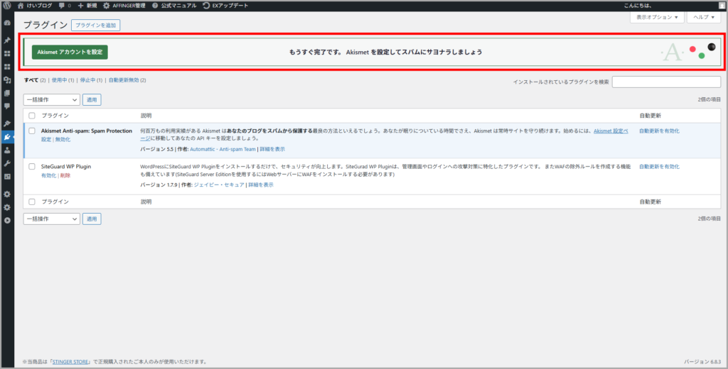 それではここからAkismet Anti-Spamの設定方法について解説していきます。