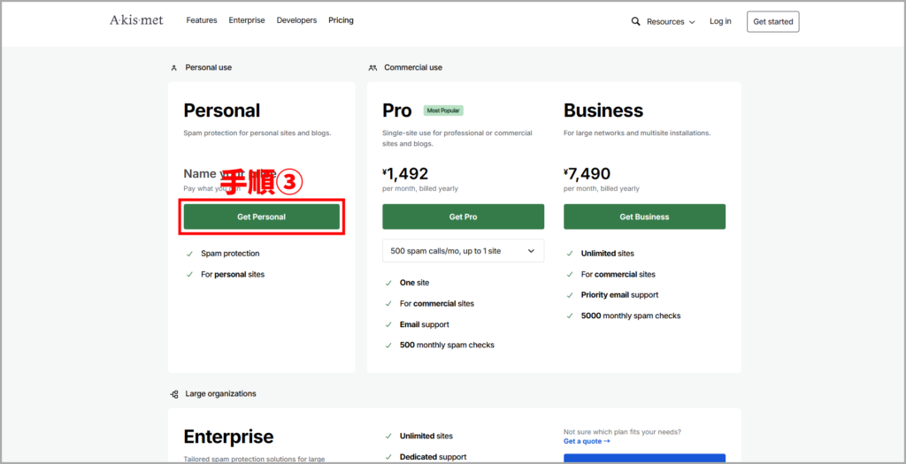 個人ブログでAkismet Anti-Spamを使う場合は、無料プランで十分です。