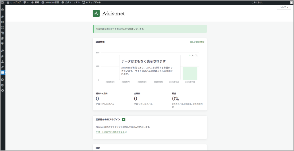 Akismet Anti-Spamの使い方としては基本的にそのまま放置でOKです。