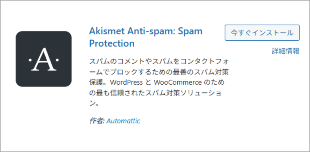 Akismet Anti-Spam(アキスメット アンチスパム)はスパムコメントからサイトを守ってくれるプラグインです。