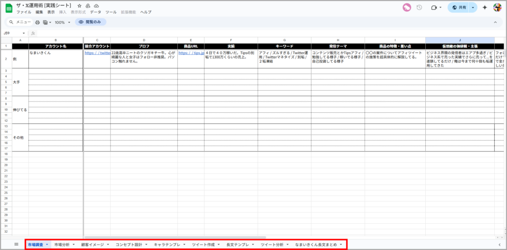 実践シートの項目を埋めていくことで、配信する市場の興味・関心、そして自分ならではの立ち位置がハッキリと見えてきます◎。そのうえで、迷いのない効率的なX運用ができるのは間違いないです。