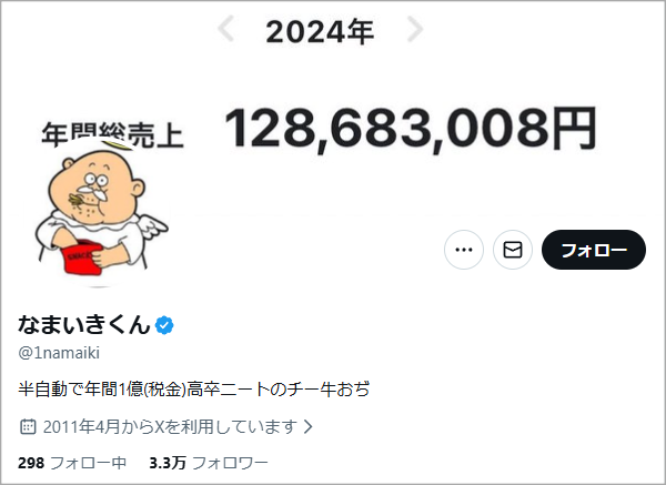 なまいき君は、ビジネス界隈でもひときわ注目されているX運用のプロ…というか教者です。
